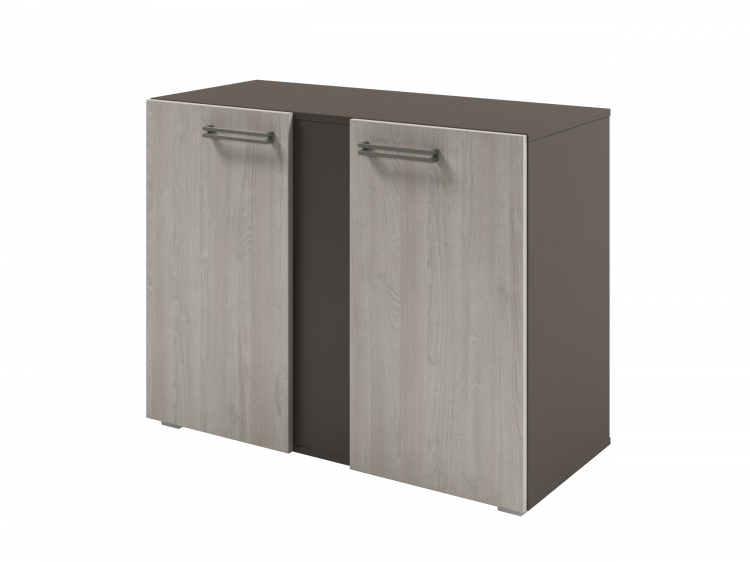 Шкаф для документов низкий с распашными дверьми.